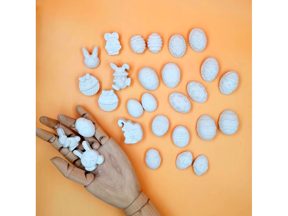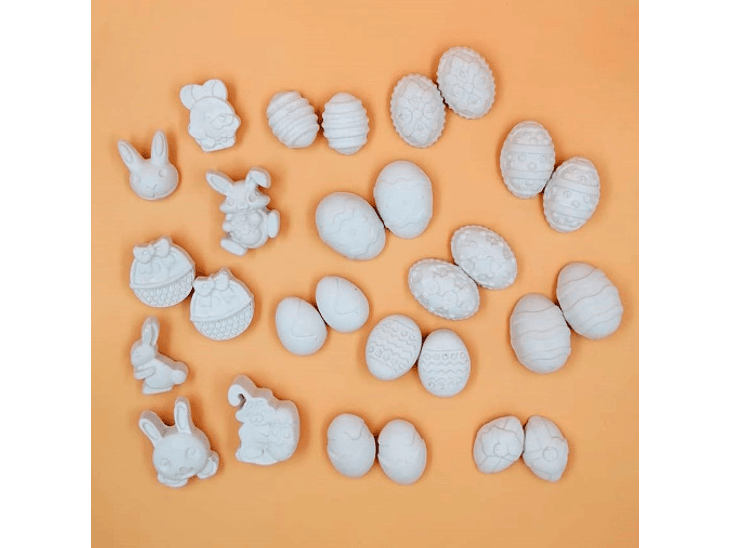 28 Mini Figuras de Conejos y Huevos de Pascua + PINTURA