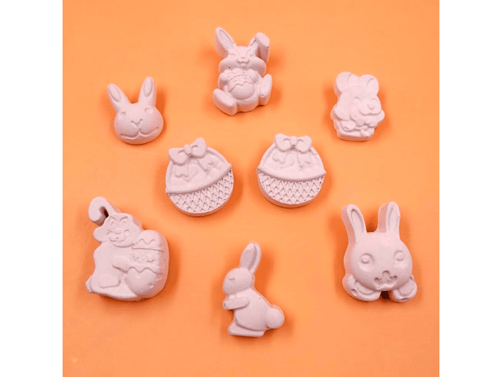 - Figuras: 6 conejos, 2 canastos y 20 huevitos